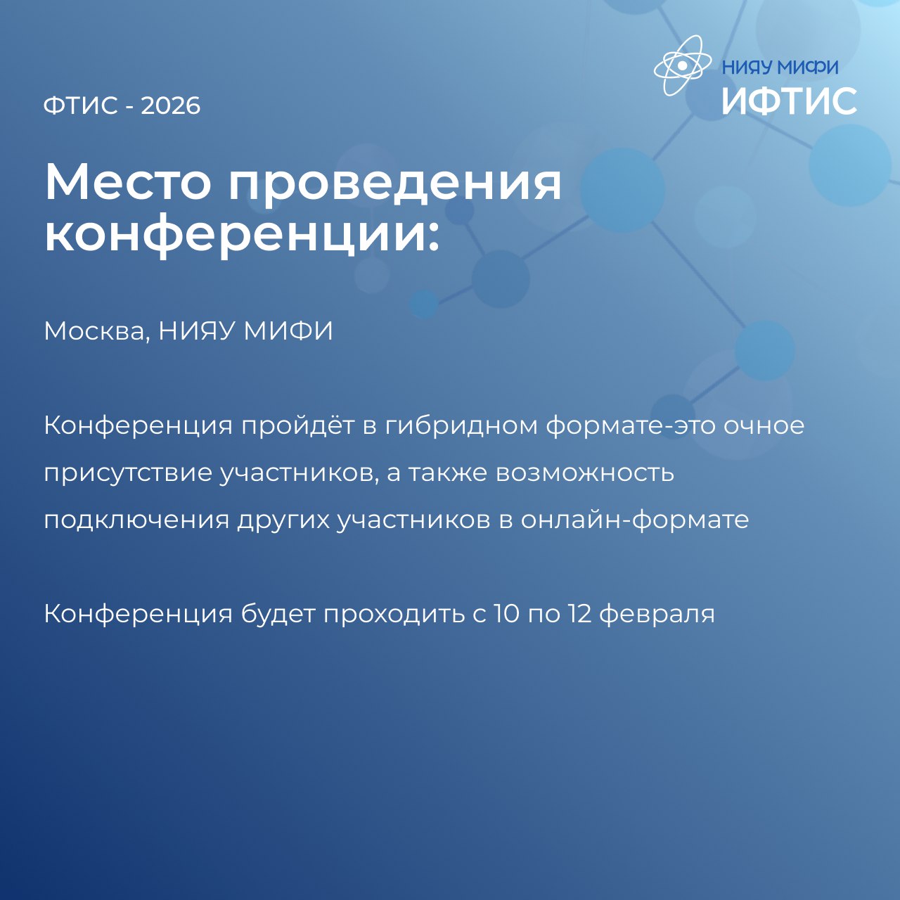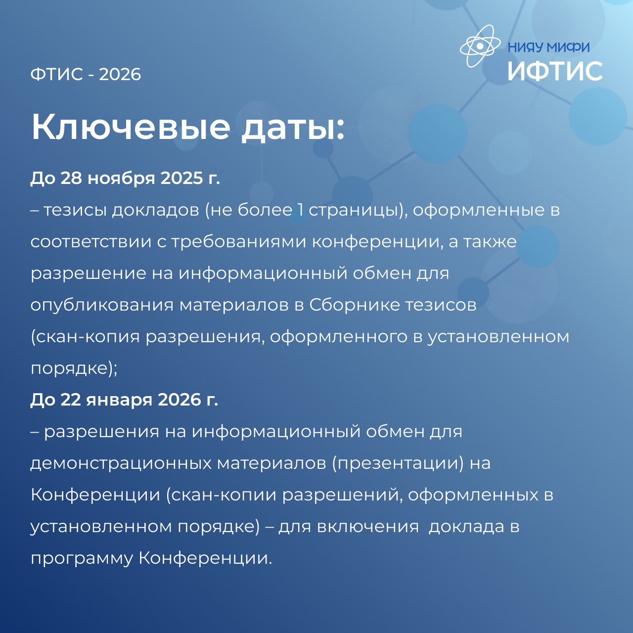 🌟Более подробная информация о конференции размещена на сайте. (https://ftis-conf.mephi.ru/)